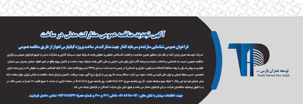 فراخوان مناقصه عمومی مشارکت مدنی در ساخت پروژه کیانپارس اهواز