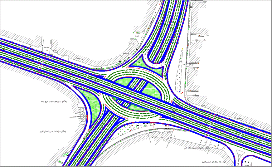 در این مطالعات بیش از 8 واریانت طرح هندسی تقاطع غیرهمسطح طراحی و توسط نرم‌افزار خردنگر ایمسان شبیه‌سازی شد.